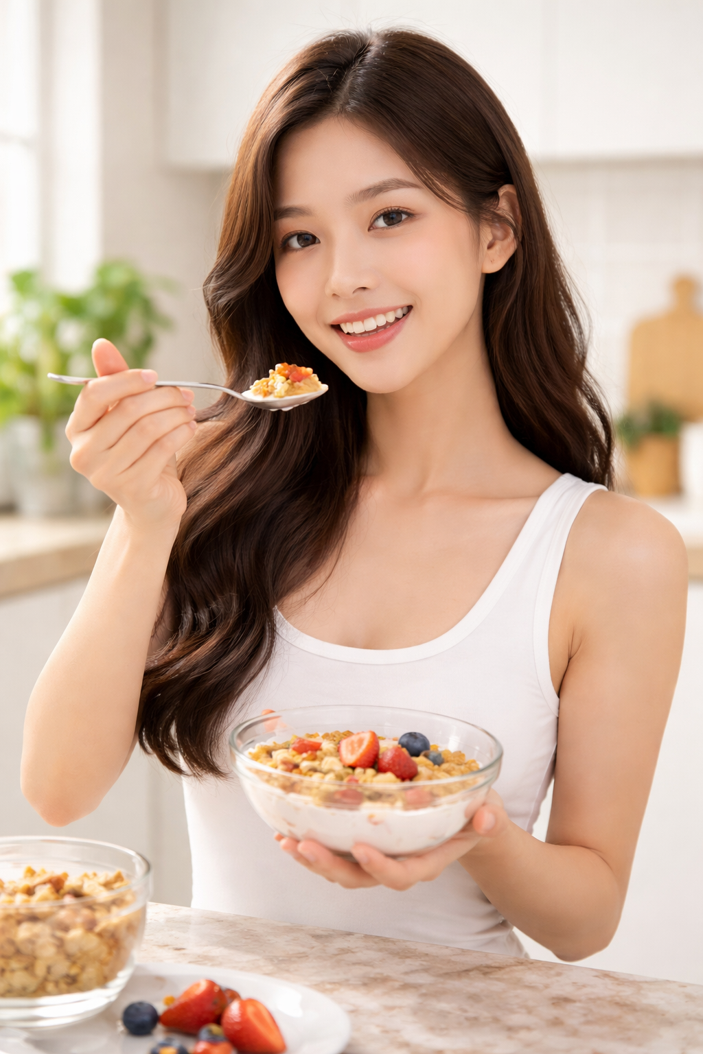 두 번째는 요거트나 우유와 함께 먹는 것입니다. 단백질과 함께 섭취하면 영양 균형이 좋아지고 포만감도 오래 유지됩니다.