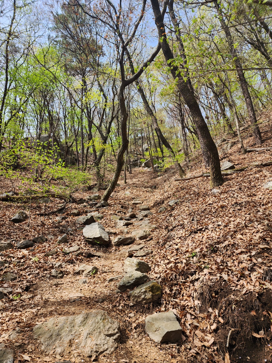급격한 오르막은 없으며 비교적 완만하여 쉽게 등산을 할 수 있습니다.