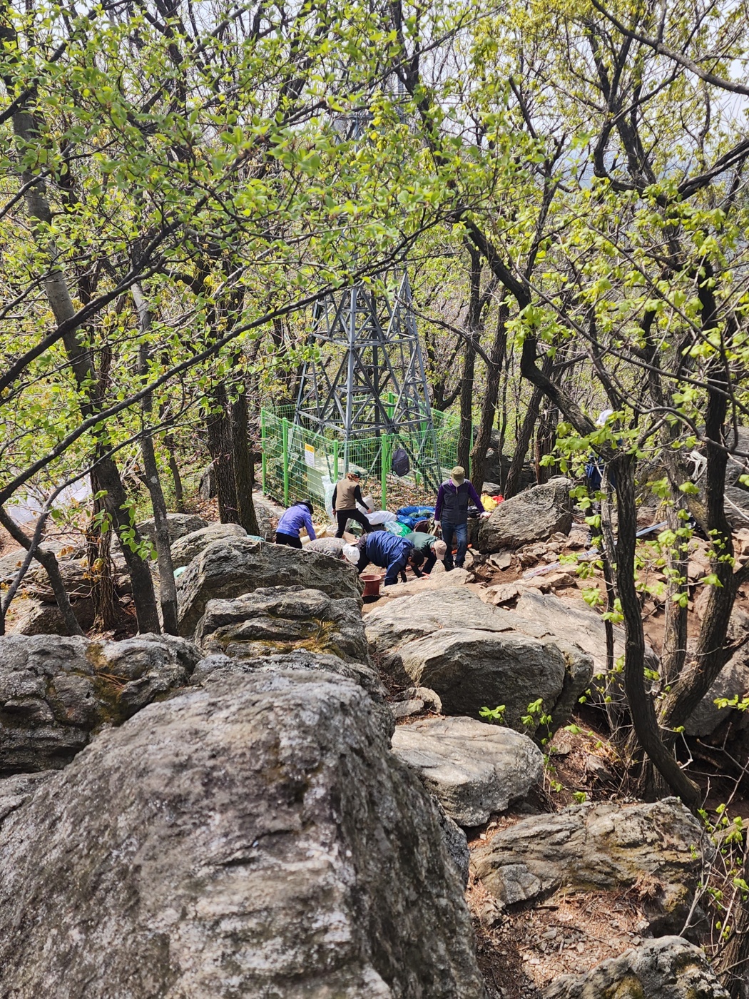 정상으로 오르는 등산로 한 곳을 막아놨길래 가보았더니 문화재 조사를 하고 있었습니다.