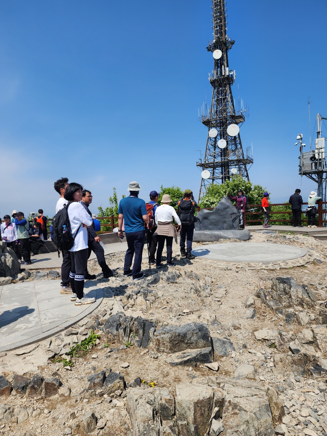 정상에 오르면 비석에서 사진을 항상 찍는데 계양산은 사람이 워낙 많아서 사진 찍으려면 줄을 서야 합니다.