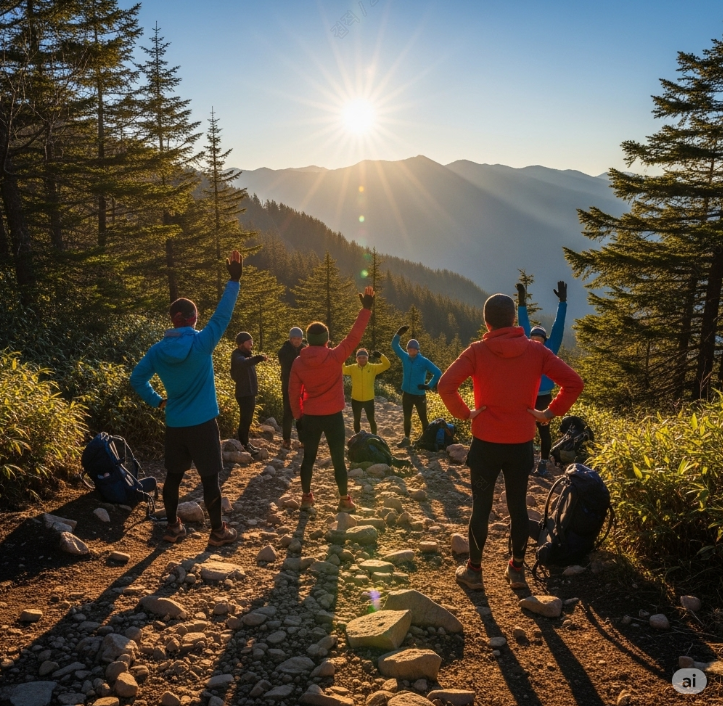 4. 심리적 준비 준비운동을 하는 시간은 '이제부터 등산을 시작한다'는 신호를 뇌에 보내는 것과 같습니다. 이를 통해 산행에 더욱 집중하고, 변화하는 지형에 신속하게 반응할 수 있는 심리적 준비 상태를 갖추게 됩니다.