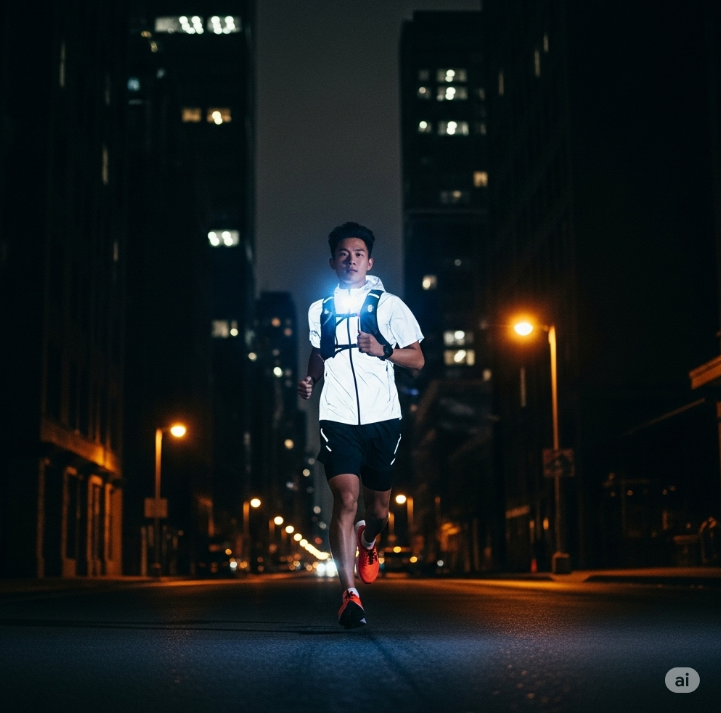- 반사 소재 의류 착용: 가장 기본적이면서도 중요한 안전 수칙입니다. 밝은 색상의 의류(형광색, 흰색 등)는 물론, 빛을 반사하는 재질(레트로 리플렉티브)이 포함된 러닝복, 조끼, 신발 등을 착용해야 합니다. 이는 자동차 전조등이나 가로등 불빛에 반사되어 러너의 존재를 알리는 데 필수적입니다. 단순히 일부분에 반사 소재가 있는 것보다 팔, 다리, 몸통 등 넓은 면적에 반사 소재가 적용된 제품을 선택하는 것이 좋습니다.