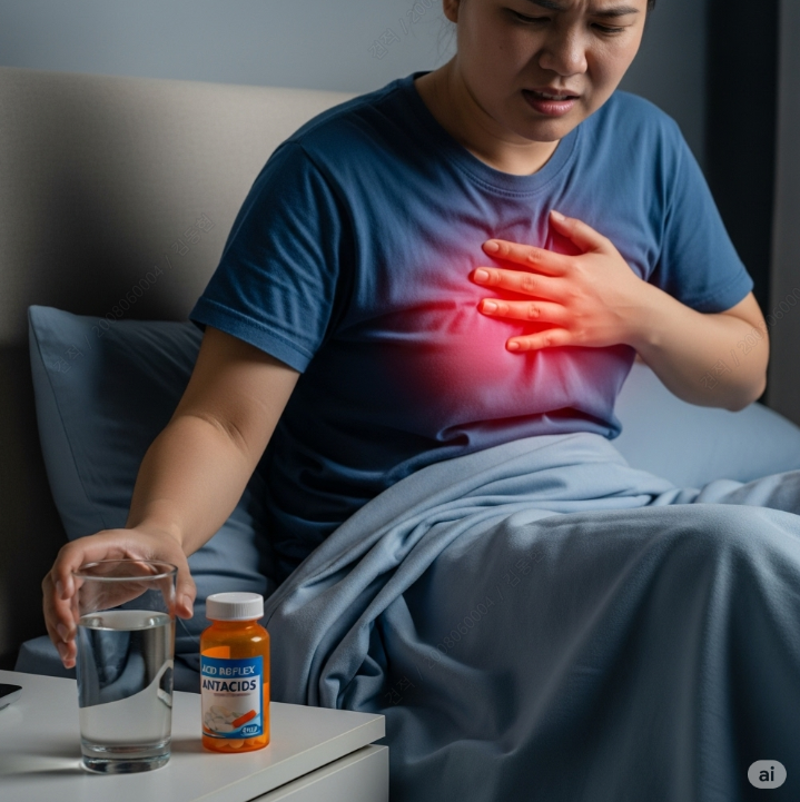 - 상체 높이고 자기: 수면 중 역류가 심하다면 베개를 높이거나 침대 상체 부분을 15~20cm 정도 올려 위산이 역류하는 것을 방지할 수 있습니다.