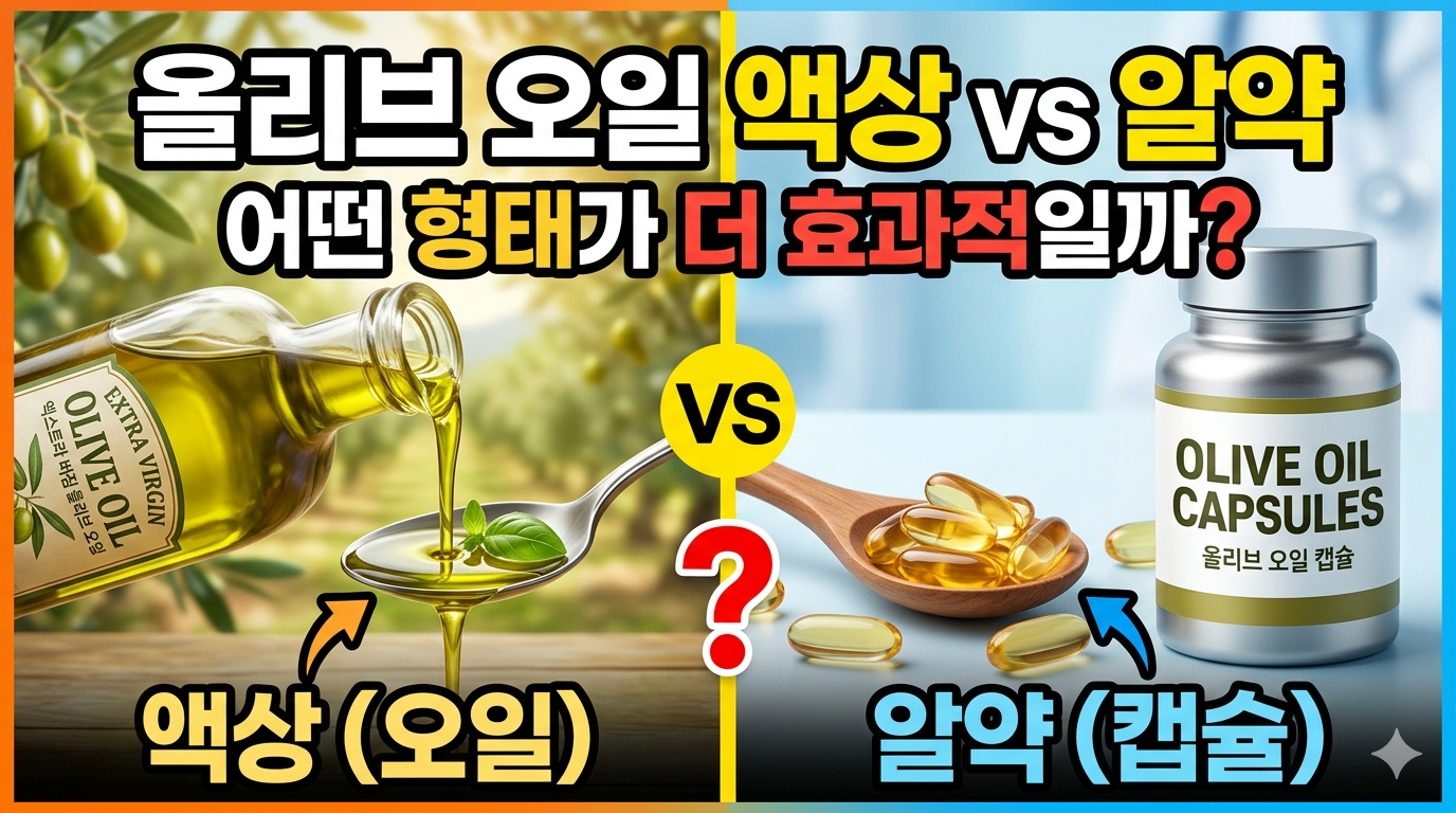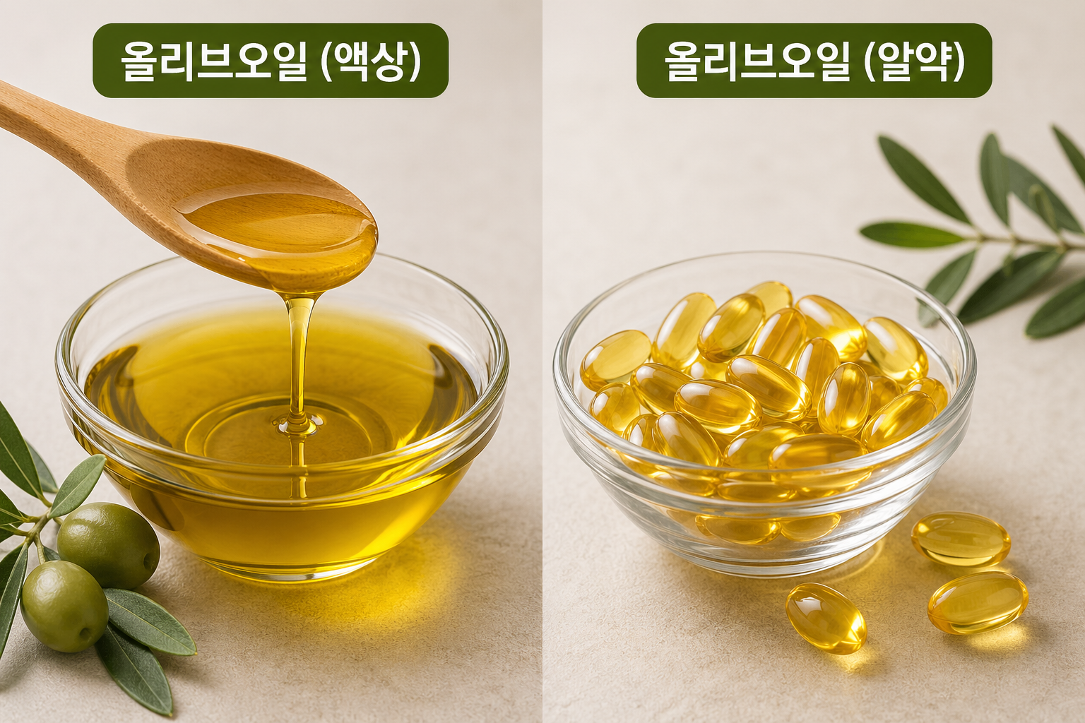 액상과 캡슐 형태의 올리브오일은 각각 장단점이 뚜렷합니다. 빠른 흡수와 자연 상태의 영양을 원한다면 액상이, 간편함과 꾸준한 섭취를 원한다면 캡슐이 더 적합합니다. 중요한 것은 자신의 생활 패턴과 목적에 맞는 형태를 선택해 꾸준히 섭취하는 것입니다.